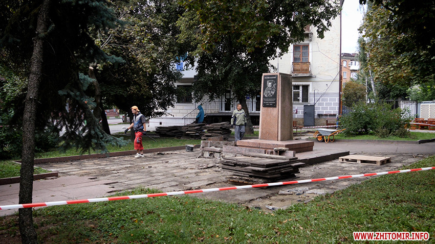 У сквері, що знаходиться на розі вулиць Театральної та Великої Бердичівської в Житомирі, 3 вересня розпочалися демонтажні роботи.
