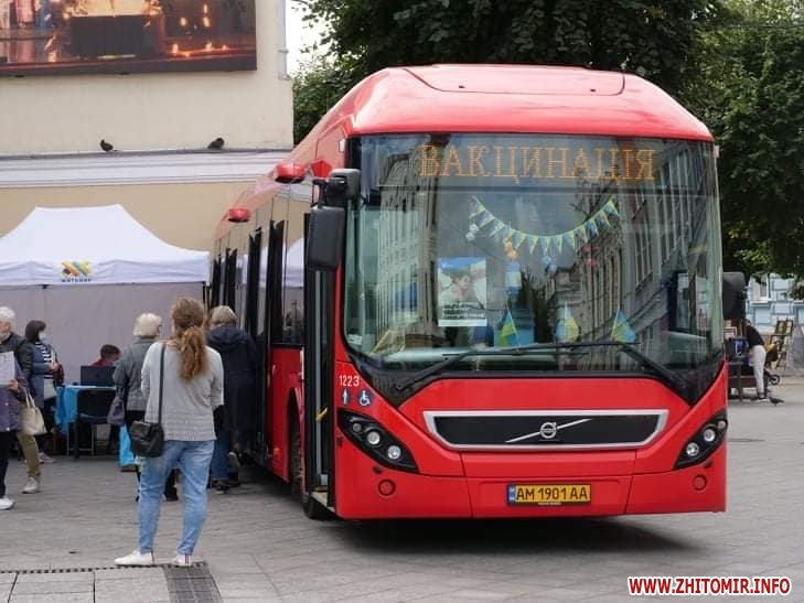 У Житомирі 4 вересня на вулиці Михайлівській запрацював мобільний центр вакцинації, в автобусі.