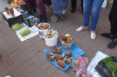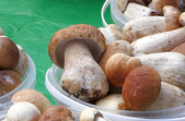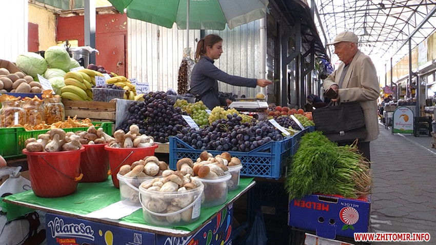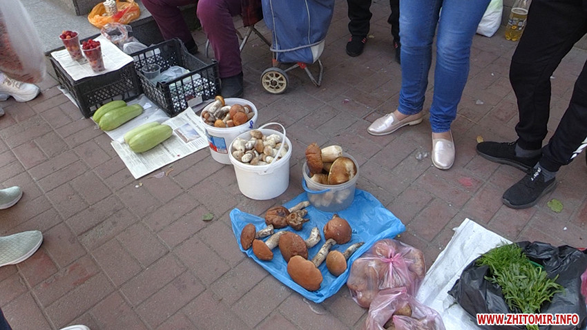 «Грибочки коштують 150 грн за відеречко, а для маринування маленькі по 100 грн, лисичка 50 грн, гриби із Червоноармійського району. Їх завжди перевіряють, у нас є документи з перевірки. Найчастіше купують білий гриб, але усілякі беруть: і сироїжку, і решетняк, і польські гриби, і краснюки, але в основному беруть білий гриб. Є такий синій гриб, коли на нього натискаєш, він моментально синіє, це означає, що він умовно їстівний. Ще є подібний до білого гриба, але у нього ніжка тоненька, і він, коли його перевертаєш, в нього ніжка не жовта, а рожева — такі гриби брати не можна, тому що там дуже багато дубильних речовин», — розповідає продавчиня Зоя.