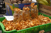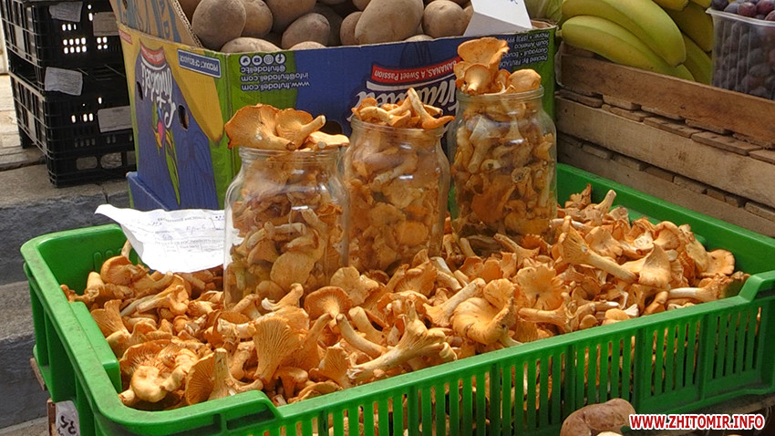 Сезон грибів у розпалі. Лисички та білі гриби на Житньому ринку пропонують житомирянам продавчині. Кажуть - продукція безпечна та зібрана в лісах Житомирської області.