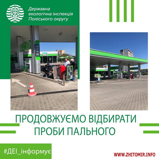 «Державною екологічною інспекцією Поліського округу, відповідно до секторального плану на 2021 рік, на одній із автозаправній станції яка знаходиться в м. Житомир, було проведено перевірку, в ході якої встановлено невідповідність документів, в результаті чого прийнято рішення про відбір проби одного виду продукції пального, а саме А–98-Євро5-Е0, які на даний час відправлені до акредитованої лабораторії ТОВ «Інспекторат Україна»», – йдеться у повідомленні.
