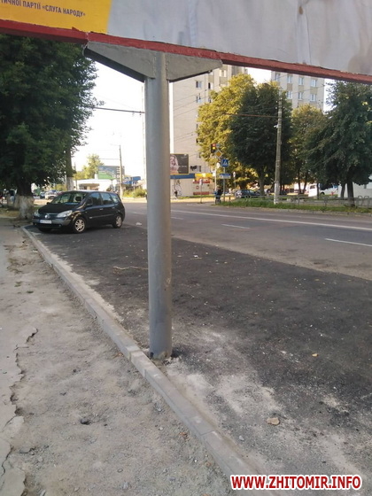 У Житомирі біля ринку «Сімейний», що на вулиці Вітрука, провели благоустрій території: зокрема, неподалік зупинки громадського транспорту облаштували місце для паркування автомобілів, звузивши пішохідну частину.