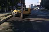 Чоловік обурюється та нарікає, що благоустрій виконаний недолуго: на новій парковці опинилася бетонна опора тролейбусної лінії, а також конструкція рекламного щита, які досі стояли на тротуарі. На думку чоловіка, стовп, який намагається «перебігти дорогу», може загрожувати виникненням тут ДТП (стовп та білборд стоять поза проїжджою частиною).