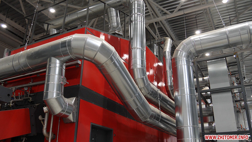 «У нас там закритий склад, туди привозиться щепа, потім такими гідроциліндрами на скребковий транспортер подається сюди щепа. Тут шнековий транспортер і ось камера згорання. Вона має три відділи, тобто умовних три зони. Перша зона - подається паливо, а знизу подається тепло, сушить. Потім горить і догорає, потім пішло... Саме тепло виділяється, подається у той наступний, це термомасляний котел», - каже технічний директор КП «Житомиртеплокомуненерго» Петро Сергійчук.