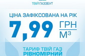 Детальна інформація про тариф «Твій газ Рівномірний платіж» розміщена на сайті https://rivnomirnyi.gaszbut.com.ua/