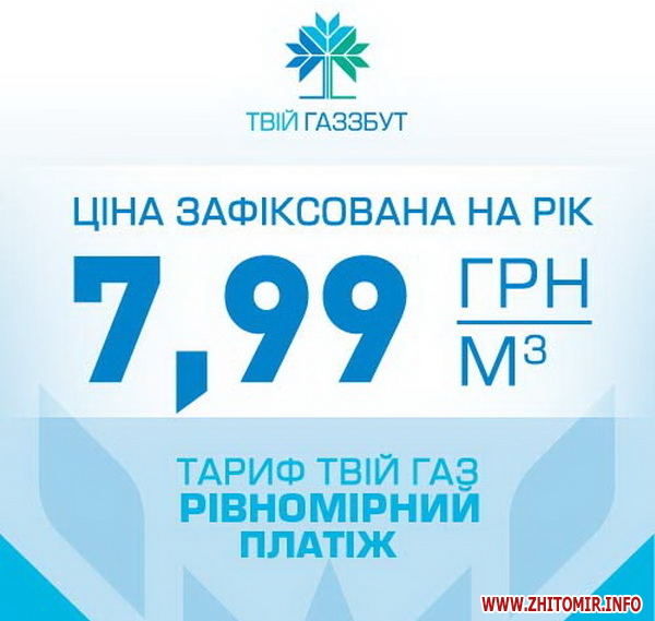 Клієнти компанії ще мають можливість підключитися до тарифу «Твій газ Рівномірний платіж» до 30 вересня 2021 року та щомісяця сплачувати за газ однакову суму. Прогнозовані та чіткі платежі у межах цього тарифу вже обрали понад 3,5 тис. жителів Житомирщини.