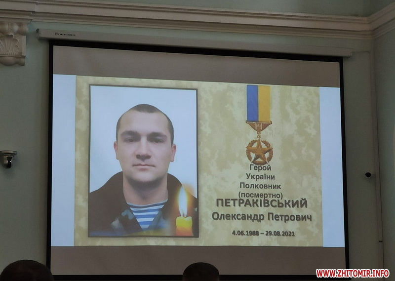 Полковнику розвідувального управління штабу Командування Сухопутних військ ЗСУ, Герою України Олександру Петраківському, який помер 29 серпня 2021 року в 33-річному віці, присвоїли звання «Почесний громадянин міста Житомира» (посмертно).