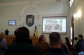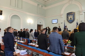 Перед голосуванням депутати стоячи слухали біографію Олександра Петраківського та історію його подвигу.