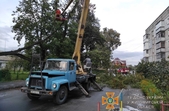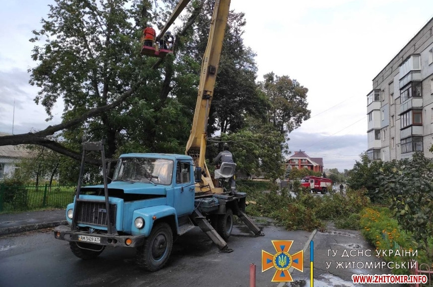 «24 вересня рятувальники Новоград-Волинського двічі виїжджали на розрізання аварійних дерев. У першому випадку дерево впало на проїжджу частину, що дещо обмежило рух автотранспорту. У короткий час бійці ДСНС розрізали та прибрали дерево з дороги. У другому випадку, внаслідок сильних поривів вітру, одне дерево впало на інше, що в подальшому могло створити небезпечну ситуацію поблизу житлових будинків. Одне з комунальних підприємств міста надало колінчатий підйомник за допомогою якого рятувальники змогли розрізати і прибрати два аварійних дерева», - йдеться у повідомленні.