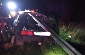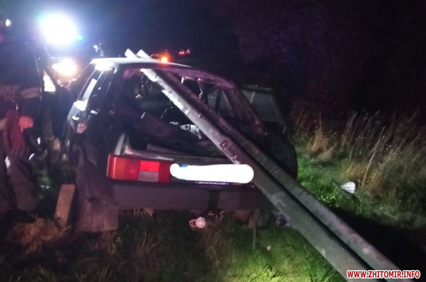 «25 вересня о 22:19 до Служби порятунку «101» надійшло повідомлення про те, що поблизу с. Українка Коростенського району (97 км автошляху Київ-Ковель) сталася дорожньо-транспортна пригода і необхідно вивільнити постраждалих людей з автівки. По прибуттю рятувальників до місця виклику було встановлено, що легковий автомобіль ВАЗ-21099 зіткнувся на дорозі з відбійником. Під час руху в салоні авто знаходилося 4 людини. 2 жінки вже залишили салон легковика, а водій та пасажир позаду нього були заблоковані в транспортному засобі. Водія затиснуло кермом та панеллю приладів, а пасажира – сидіннями. Внаслідок пригоди конструкції автомобіля деформувалися і дверцята відчинити не вдавалося. В обох постраждалих були видимі травми», - йдеться у повідомленні.