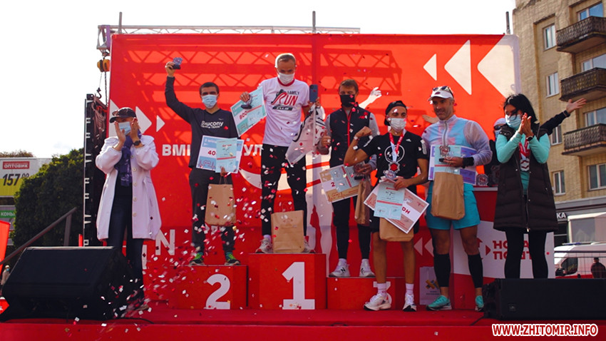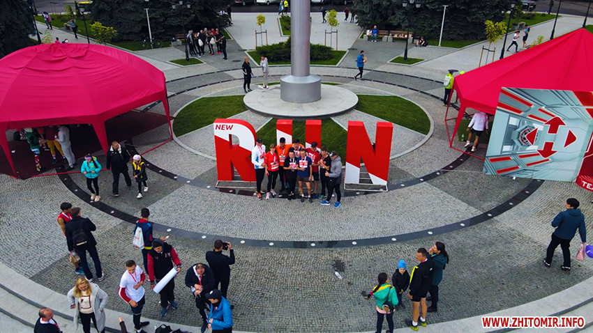 О 9:00 на майдані Соборному у Житомирі стартували 220 бігунів на найдовшу дистанцію Космомарафону – 21 км. Далі о 9:25 розпочали забіг на 10 км. Найстаршому учаснику - 72 роки.