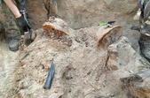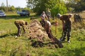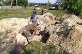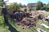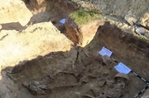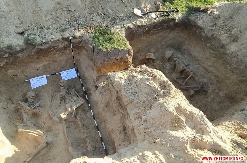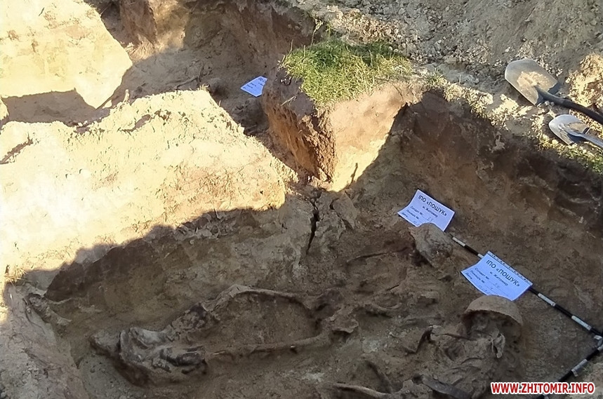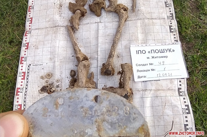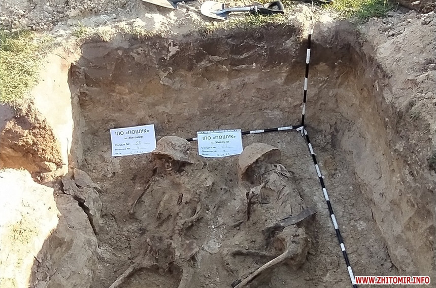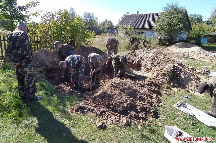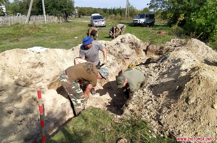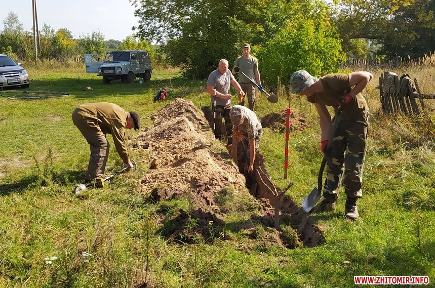 «12 вересня в Лугинському районі Житомирської області відпрацьовували "легенди" місцевих жителів про закопаних червоноармійців. Пів дня траплялося лише побутове сміття і надія когось знайти ставала все примарнішою. Проте нам допоміг старий перевірений метод - шурфіння землі. Було прийнято рішення у ймовірному місцезнаходженні солдат прокопати траншею, довжиною 5-7 метрів і шириною 40 см для того, щоб впевнитись на 100% чи є там хтось чи немає. Інтуїція не підвела і за декілька метрів на глибині 30 см з'явилась перша кістка. За 10 хв. в іншому кінці шурфу з'явилась інша кістка. Було прийнято рішення розширити ями.
