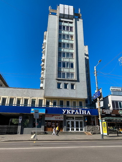 Готель розташований у самому центрі міста - по вулиці Київська, 3. Його площа складає 4109.4 кв.м. Приміщенням опікується комунальне підприємство «Готельний комплекс «Україна» Житомирської обласної ради.