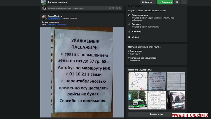 Як повідомляв Житомир.info, 4 серпня 2021 року члени Житомирського виконавчого комітету затвердили зміни в міській автобусній і тролейбусній мережах. 13 вересня 2021 року начальник управління транспорту і зв’язку Житомирської міської ради Костянтин Підпокровний пояснив, що нова автобусна мережа запрацює з 2 жовтня, а також нагадав, які маршрути зміняться.