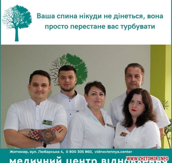 Медичний центр «Відновлення» знаходиться за адресою: м. Житомир, вул. Любарська, 4, телефон для запису 0800 305 860.