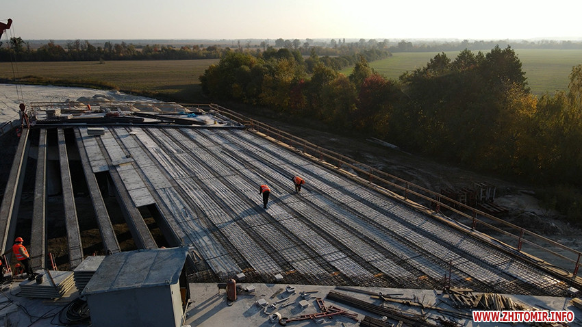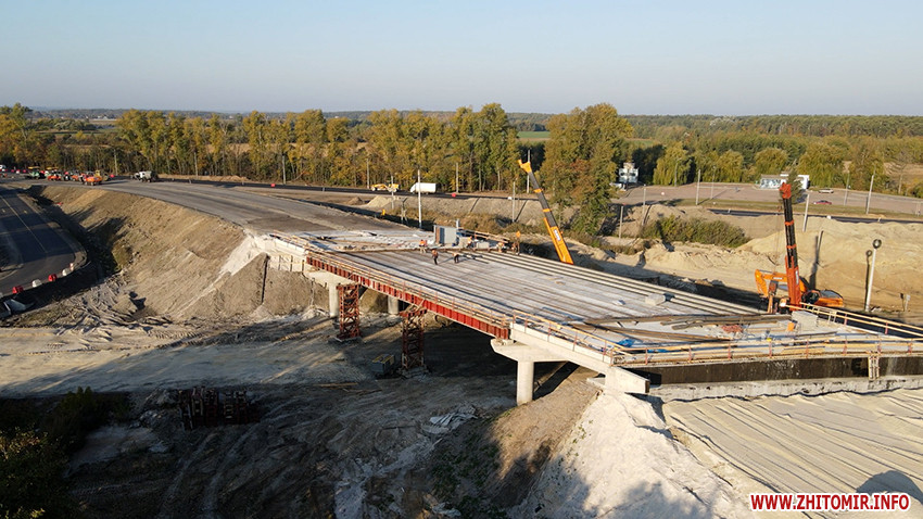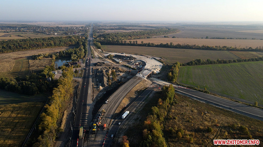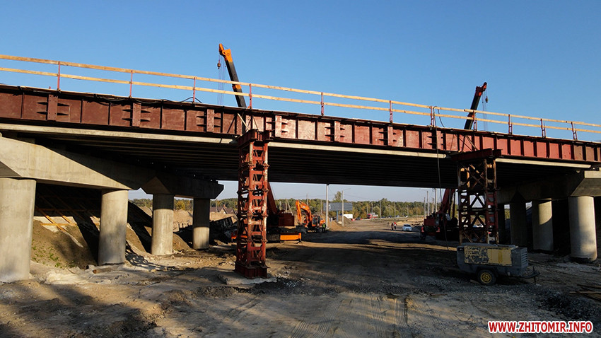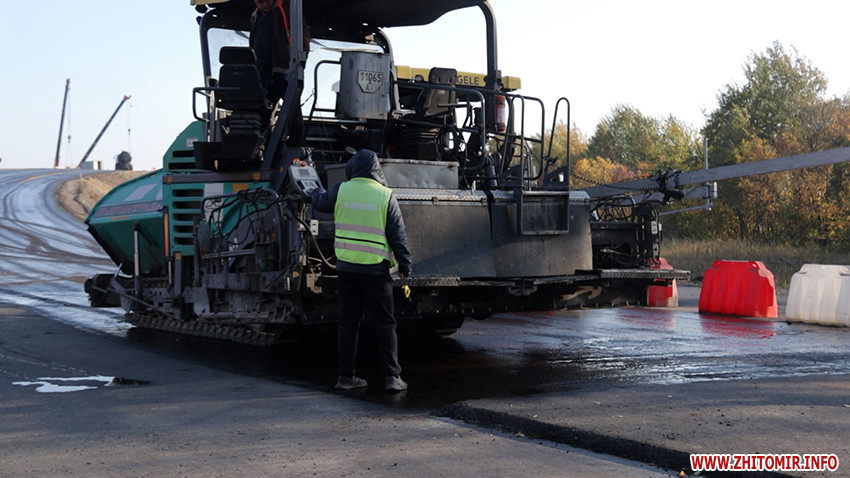 Сьогодні підрядник завершує асфальтування на в'їзді транспортної розв’язки зі сторони Бердичева, паралельно працюють над зведенням шляхопроводу.