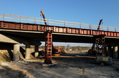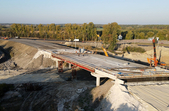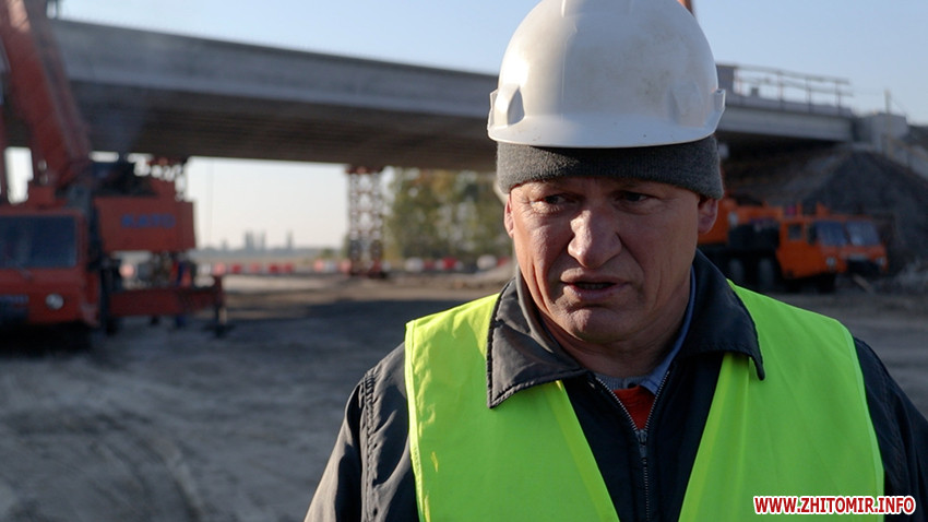 «На даному етапі ми закінчили монтаж останньої балки довжиною 33 метри, в принципі балки вже змонтовані. На даний момент 15 людей працює вдень і один вночі. Працює у нас три крани, три котки, екскаватор, компресор і вантажна машина МАЗ. Хотілося б скоріше повністю завершити монолітну плиту. На двох прольотах монолітна плитка завершена вже, по 12 метрів. Останню балку ми змонтували, почали вчора армувати. Я сподіваюся, що, якщо буде все добре, то десь числа 25-30 ми зможемо завершити монолітну плиту, але це ще залежить від того, якою буде погода», - розповідає виконроб Валентин Карлюка.