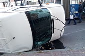 автомобіля, а мікроавтобус лежав на проїжджій частині.