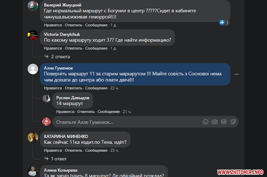 Як повідомляв Житомир.info, 20 вересня 2021 року відбувся конкурс на визначення перевізників на міських автобусних маршрутах Житомира, деякі з яких були змінені. 1 жовтня міськвиконком затвердив результати конкурсу на визначення перевізників, нова автобусна мережа мала запрацювати з суботи, 2 жовтня. Втім на вихідних житомиряни фіксували невідповідність між тим, як курсували водії, та маршрутами, які були вказані у новій схемі руху.