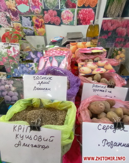 - А також - квіти, сортова картопля, декоративні рослини, саджанці плодово-ягідних кущів та дерев.