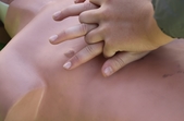 «Наприклад, людина, яка до цього почувалася добре, раптово втрачає свідомість і падає...“Ви підходите і запитуєте: “Ви мене чуєте?”. Струснули плече і запитали ще раз: “Ви мене чуєте?». Нахиляєтесь над ротом і, дивлячись на грудну клітку або поклавши на неї руки, 10 секунд перевіряєте чи людина дихає. Якщо є навички, можна одночасно перевірити пульс на шиї (на сонній артерії). Якщо дихання відсутнє або порушене - якомога швидше, зателефонувавши 103, викликаєте швидку. Терміново розпочинаєте непрямий масаж серця. Для цього ставимо руки «в замок» в нижній половині грудної клітки та робимо компресії глибиною 5-6 сантиметрів з частотою 100-120 натискань за хвилину. Через дві хвилини треба зупинитися і помінятися з кимось, бо робити масаж серця стає фізично важко і він вже не буде таким ефективним. Продовжувати непрямий масаж серця необхідно до прибуття бригади екстреної медичної допомоги..» , – моделює ситуацію викладачка Житомирського медичного інституту, лікарка - анестезіологиня Наталія Слінчак.