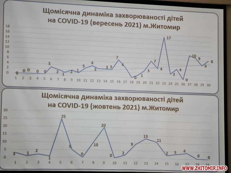 «У першій лікарні знаходяться 179 пацієнтів, у лікарні №2 – 208, у Житомирській обласній дитячій лікарні – 24. За добу в лікарню №2 госпіталізували 46 осіб, але було більше 100 звернень. Зараз пацієнти потрапляють в досить важкому стані. Саме Дельта штам і перебіг Covid зараз дуже не передбачуваний і практично всі, хто госпіталізуються, потребують кисневої підтримки, і нам потрібно до 2 тонн кисню на добу. Динаміка захворюваності за останні два тижні дуже негативна і перевищує те, що ми бачили влітку. Практично кожен день ми маємо летальні випадки -3, -5, -10 випадків», - розповіла Марія Місюрова.