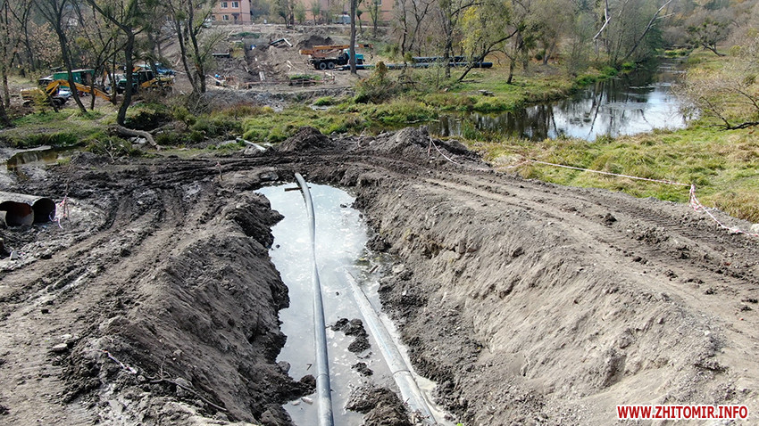 «Зараз ми знаходимося біля річки Кам'янка, під якою проходить найбільший за діаметром дюкерний перехід, який належить до магістрального трубопроводу, який постачає 50% води мешканцям Житомира. Вчора ми займалися реконструкцією дюкерного переходу. А саме, ми санували діаметр 1000 мм меншим діаметр 700 мм. Дюкерний перехід складається з двох трубопроводів, і один з них вчора (19 жовтня) був реконструйований», – пояснює Андрій Нікітін.В найближчі тижні роботи на цій ділянці мають продовжитися, у зв'язку з цим за деякими адресами знову можливі проблеми з водопостачанням.