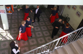 Після кожного танцю артисти аплодують самі собі та всміхаються. Хто втомився - сідає перепочити, п'є воду, поправляє одяг та спілкується з друзями.