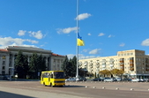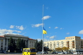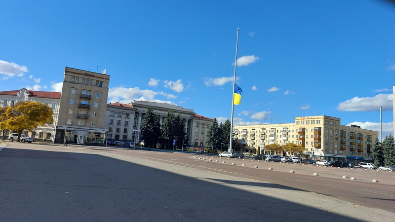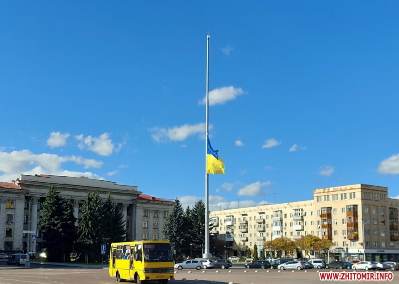 22 жовтня на майдані Соборному у Житомирі приспустили велетенський синьо-жовтий прапор.
