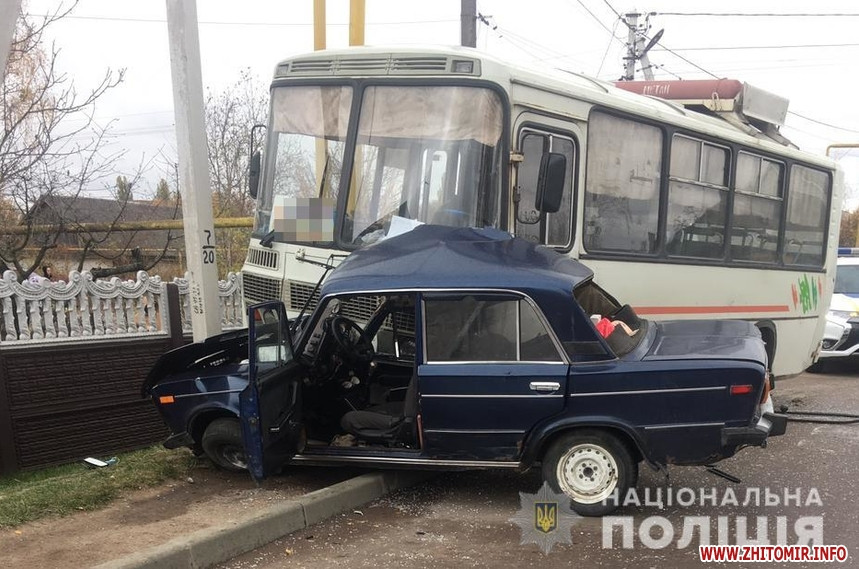 У Коростені 24 жовтня на перехресті вулиць Григорія Сковороди та Василя Стуса ВАЗ зіткнувся з автобусом. До лікарні з травмами потрапив водій легковика.