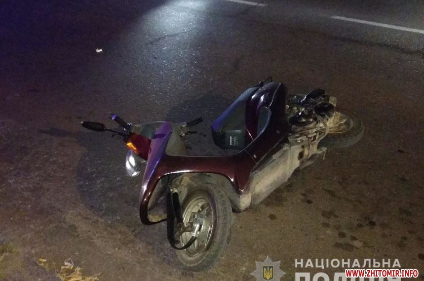 Увечері 30 жовтня у місті Бердичів Житомирської області сталася смертельна дорожньо-транспортна пригода: 40-річний чоловік на мопеді врізався у стовп.