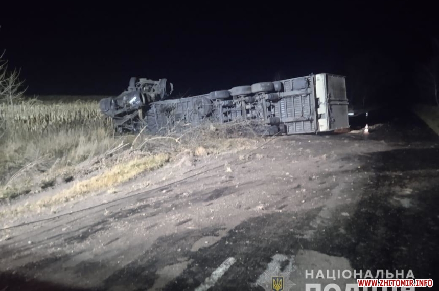 Як повідомляв Житомир.info, 30 вересня на трасі у Житомирській області вантажівка злетіла у кювет.