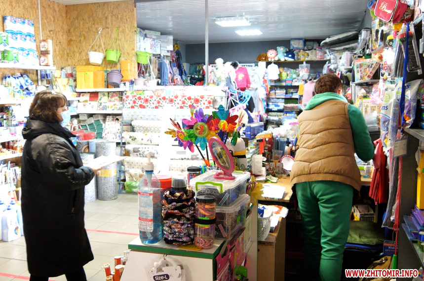 «Під час червоного рівня мають право працювати суб'єкти господарювання, які мають в об’єму 60% та більше продовольчих товарів, засобів індивідуального захисту. Фактично ми бачимо, що тут більшість – це засоби гігієни. Тому мають право працювати. Питань по утриманню приміщень немає, всього дотримуються», - начальник відділу державного нагляду за дотриманням санітарного законодавства Житомирського районного управління ГУ Держпродспоживслужби Лариса Зембицька.