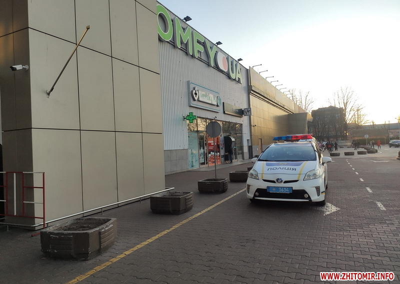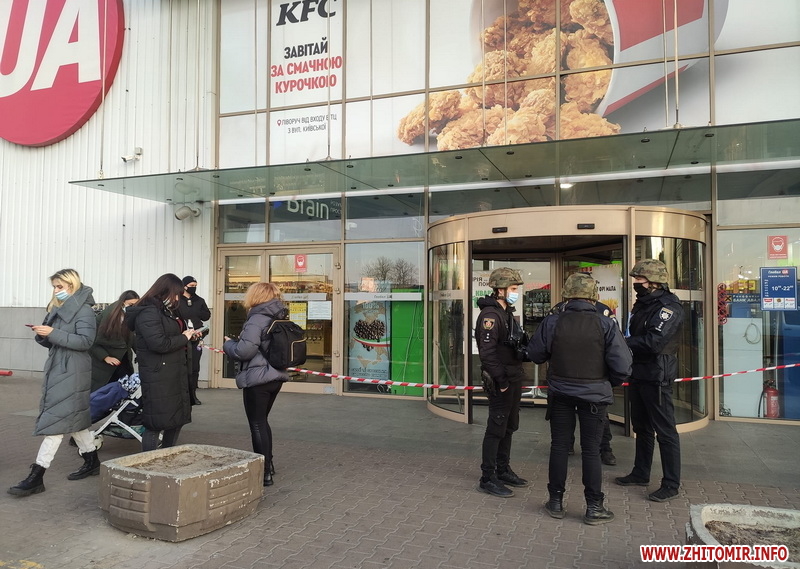 "У Житомирі поліцейські перевіряють анонімне повідомлення про замінування двох торговельних центрів. Таке електронне повідомлення надійшло 11 листопада, після 15:00, до УДСНС в області, про що рятувальники відразу поінформували поліцію. Нині у місцях розташування двох торгівельних центрів у м. Житомирі працюють відповідні підрозділи поліції. В електронному повідомленні йдеться про замінування торгівельних центрів, що по вулиці Київській та поблизу Житнього ринку. До їх місць розташування відразу виїхали поліцейські слідчо-оперативних груп ГУНП та Житомирського райуправління, патрульні, кінологи зі службовими собаками та представники інших відповідних структур. Фахівці вибухотехнічної служби після евакуації відвідувачів розпочали ретельне обстеження приміщень", - повідомили в поліції.