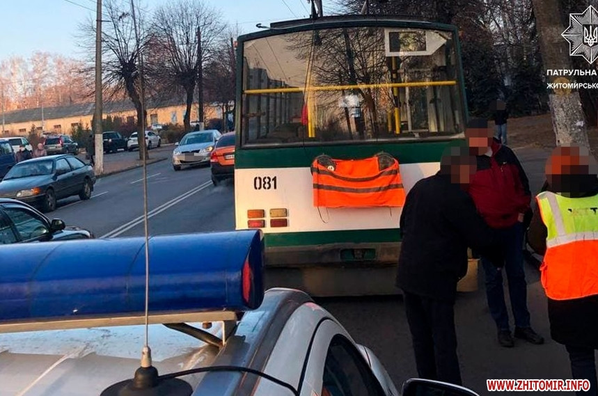 У Житомирі на вулиці Перемоги зранку, 12 листопада, сталася дорожньо-транспортна пригода за участі тролейбуса та Citroen.