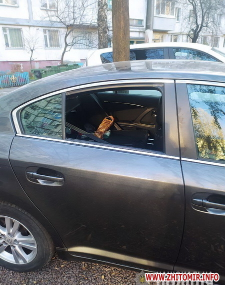 «Уранці 12 листопада до Житомирського районного управління поліції звернулися троє місцевих жителів. Чоловіки повідомили, що уночі хтось обікрав їх автомобілі, залишені у дворах багатоповерхівок. Заявники вказували, що у транспортних засобах розбите скло вікон, а із салонів зникли вартісні речі», - йдеться у повідомленні.