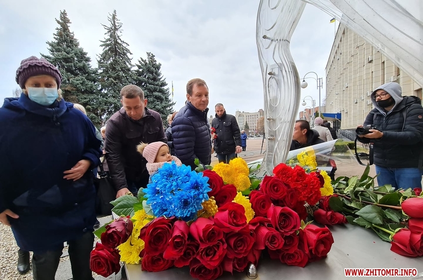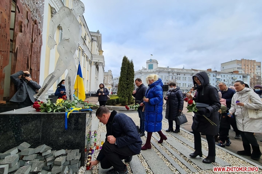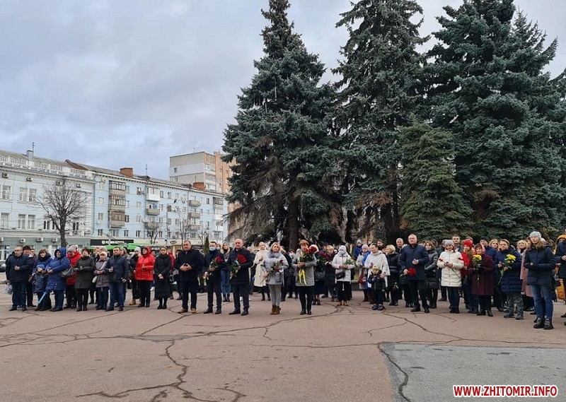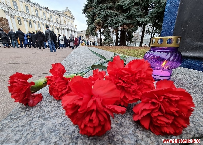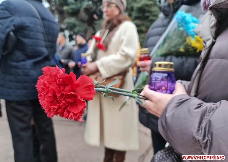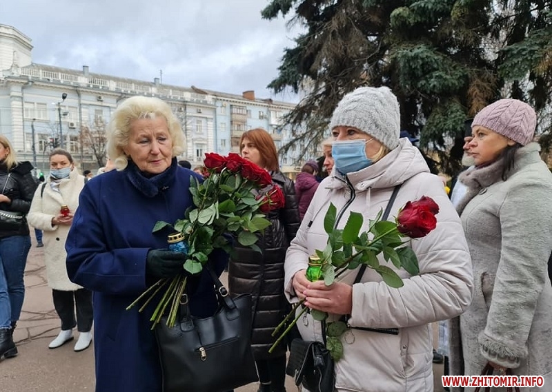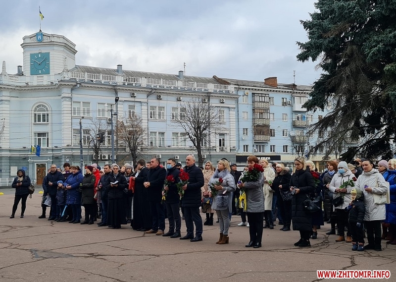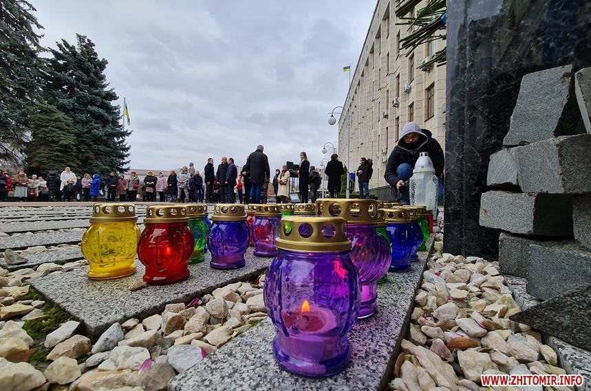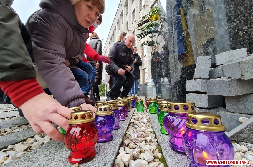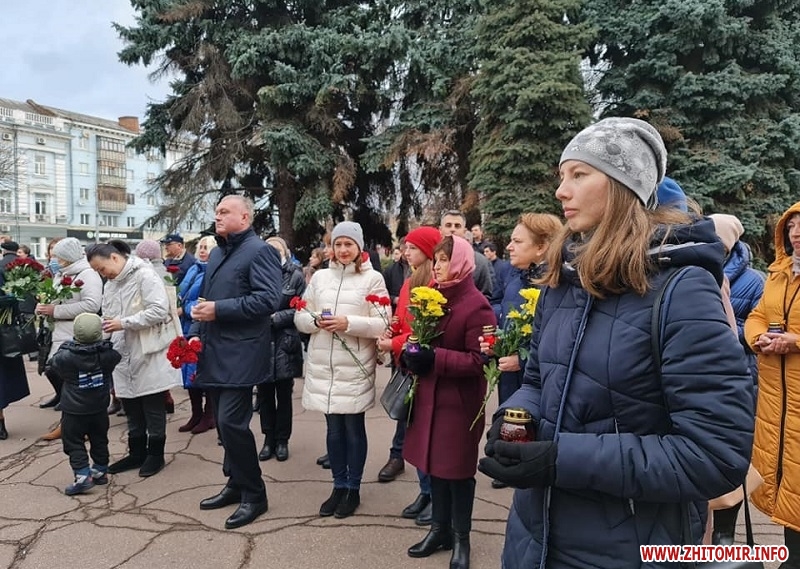 Заходи в Житомирі розпочалися після 10-ї години. Біля пам’ятного знака зібралися кілька десятків містян, люди принесли квіти й лампадки. Участь у мітингу-реквіємі беруть керівники міста й області та духовенство.