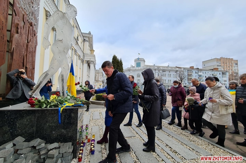 Щороку 21 листопада в Україні відзначають День Гідності та Свободи. Житомиряни цього дня збираються на майдані Корольова, біля пам’ятного знака Героям Небесної Сотні, аби вшанували тих, хто загинув на Майдані.