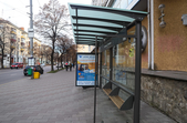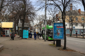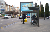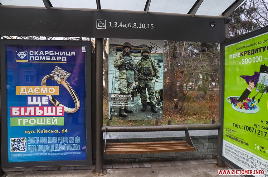 Практично на всіх зупинках розміщені рекламні плакати: креативні, об'єктивуючі та соціальні. Плакат на честь воїнів АТО «Обличчя миру» на зупинці біля школи № 17 пошкоджено.
