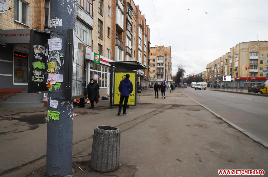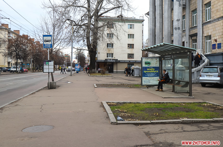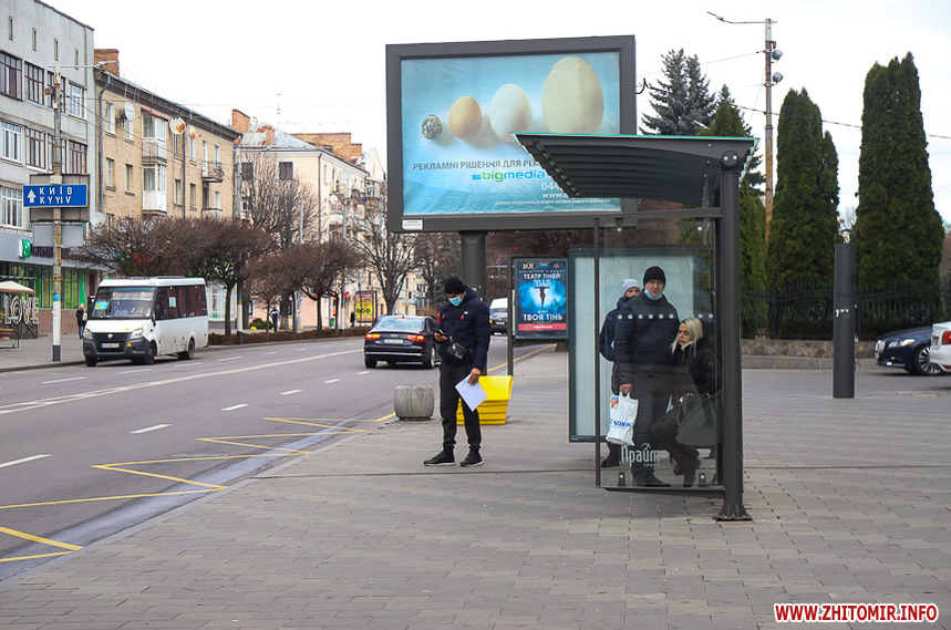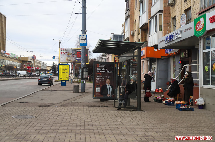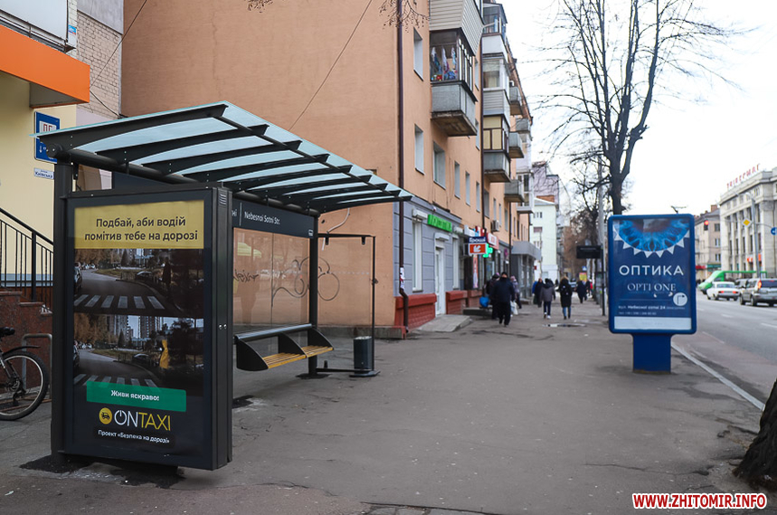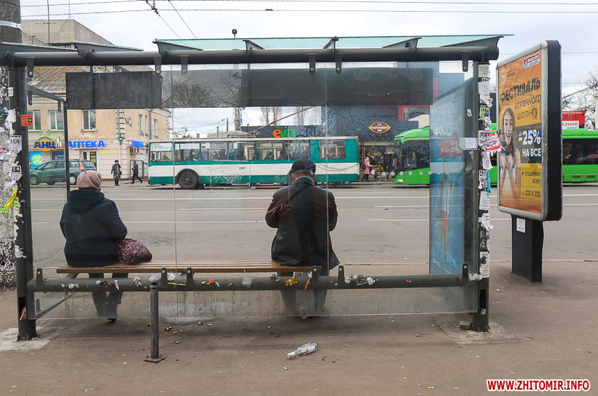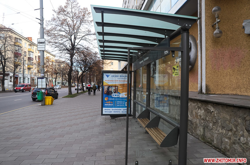 «Проінспектувавши» зупинки по вулиці Київській у Житомирі, можемо відзначити, що майже всі вони скляні та сучасні. Вони переважно в гарному стані, адже тут встановлені камери спостереження. На кількох зупинках висять таблички з забороною паління. Найбруднішими виявилися зупинки на автовокзалі.