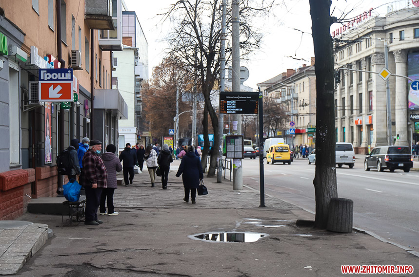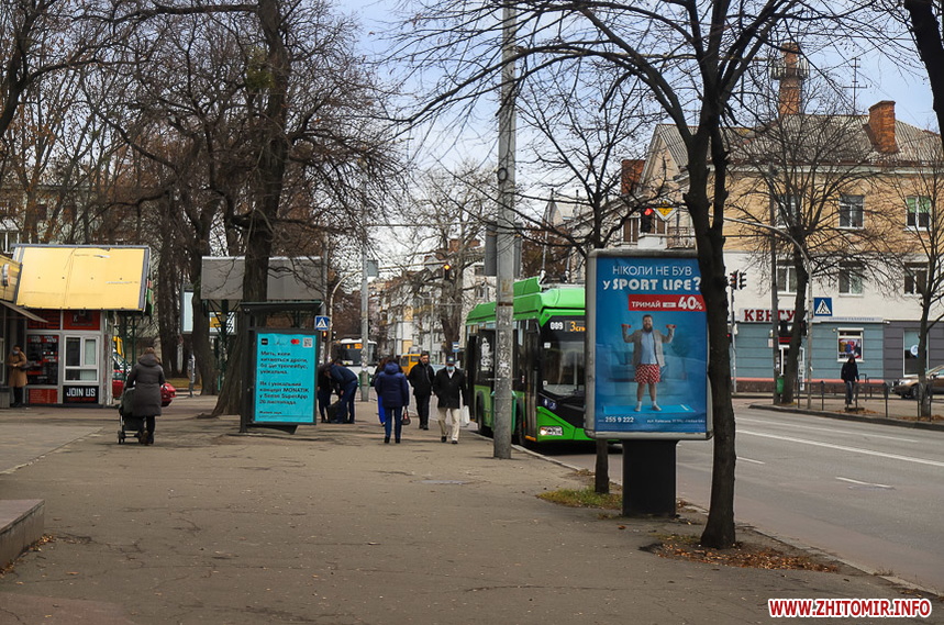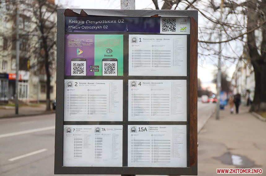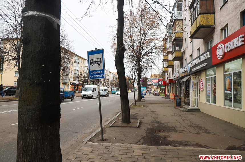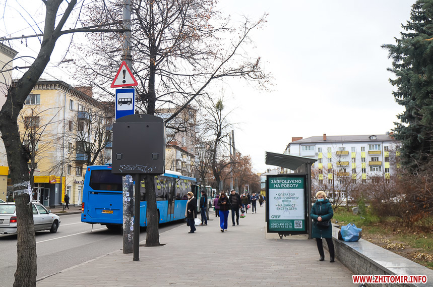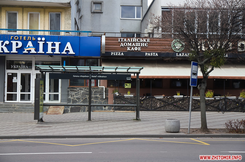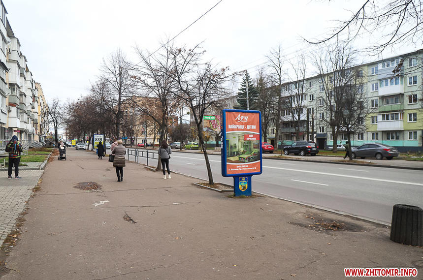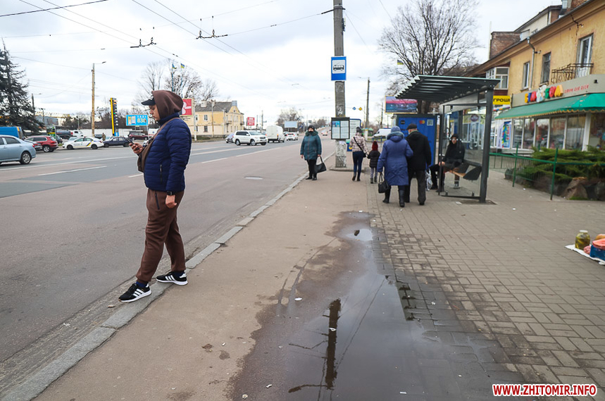 «Проінспектувавши» зупинки по вулиці Київській у Житомирі, можемо відзначити, що майже всі вони скляні та сучасні. Вони переважно в гарному стані, адже тут встановлені камери спостереження. На кількох зупинках висять таблички з забороною паління. Найбруднішими виявилися зупинки на автовокзалі.