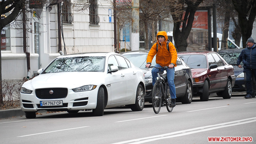 «Такі смуги (для громадського транспорту) у нас в Житомирі вже є. Це є відрізок від вулиці Львівської до Грушевського, що є продовженням велодоріжки, яка йде по вул. Небесної Сотні. і така ж сама смуга ДЛЯ громадського транспорту є від майдану Короленка від школи №6 і до вул. Грушевського. Оскільки у нас потік громадського транспорту меншій, ніж загальний потік автомобілем, то велосипедисту буде зручно рухатись ним», - коментує представник велоспільноти Житомира Андрій Бабак.