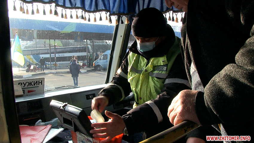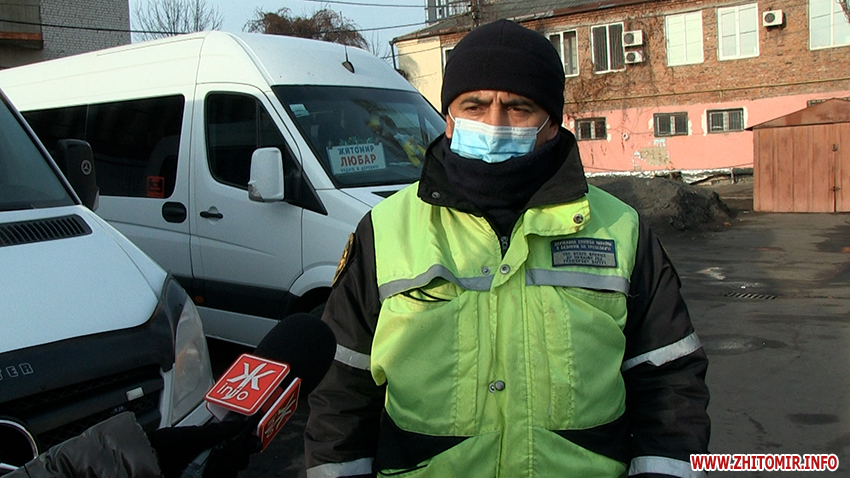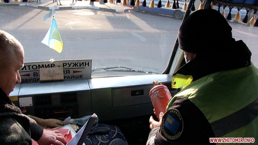 «Під час проведення перевірки було виявлено порушення пункту 27 правил надання послуг. Також виявлено встановлення на задній осі літньої резини та виявлено тріщину вітрового скла. Всі перевізники повинні змінити літню гуму на зимову, маються на увазі транспортні засоби категорії М2. Під час виявлення порушення складається акт по перевірки транспортного засобу з чітким визначенням правопорушення. Автоперевізник запрошується до управління для розгляду матеріалів правопорушення, рішення приймає керівник територіального управління. Розмір штрафу залежить від порушення, якщо це порушення режиму праці, штраф складає 340 грн, якщо це дозвільні документи, санкція передбачає 17 тис. грн», — каже старший державний інспектор відділу державного контролю за безпекою на транспорті у Житомирській області Подільського регіонального управління Укртрансбезпеки Анатолій Нагорський.