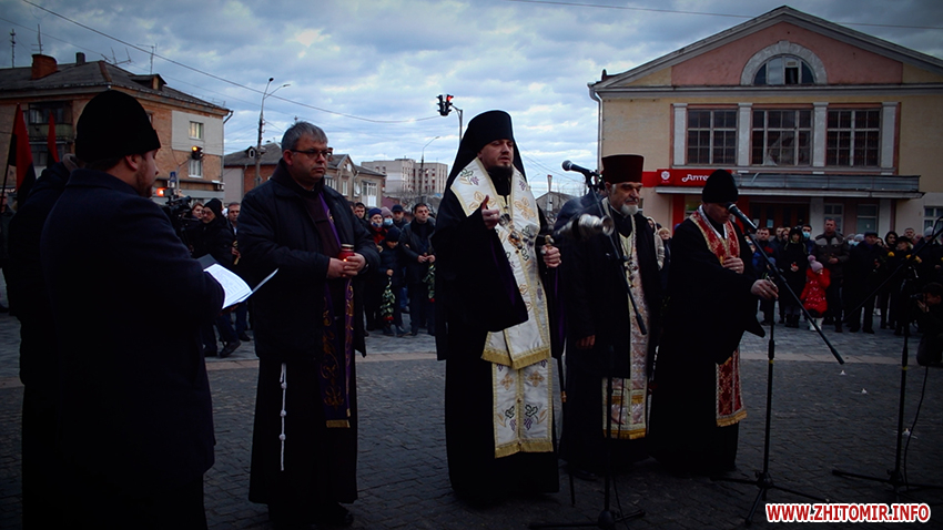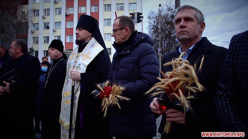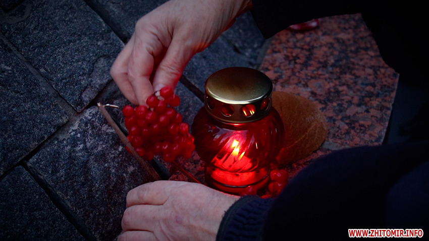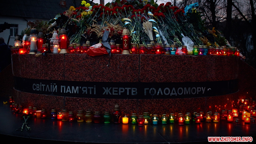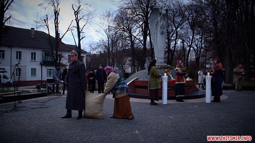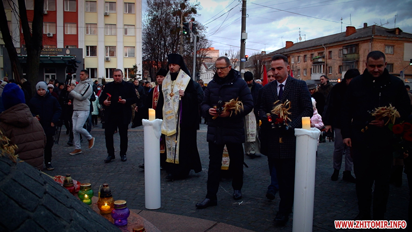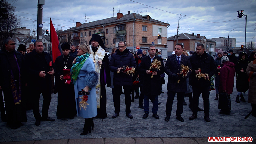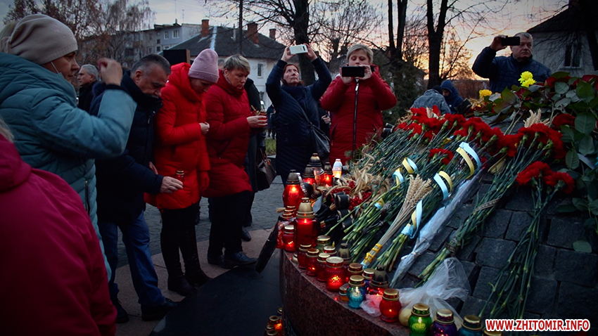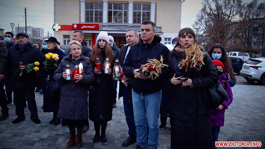 Вшанувати пам'ять жертв голодоморів прийшли більше 100 житомирян, представники влади та духовенства. Із собою люди приносили до «Сумуючого Янгола» в'язочки зерна, хліб, яблука та квіти.