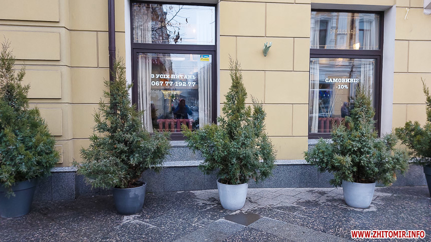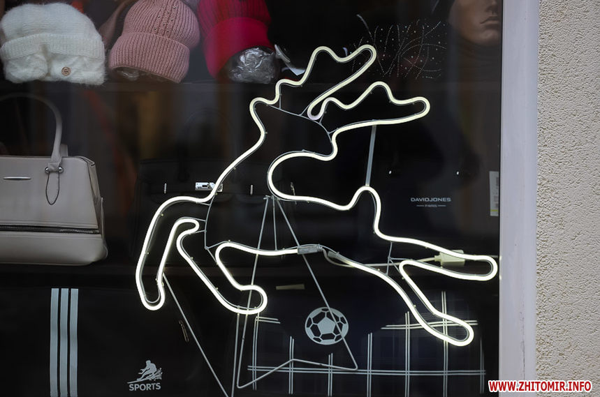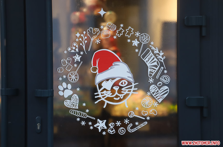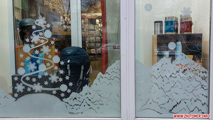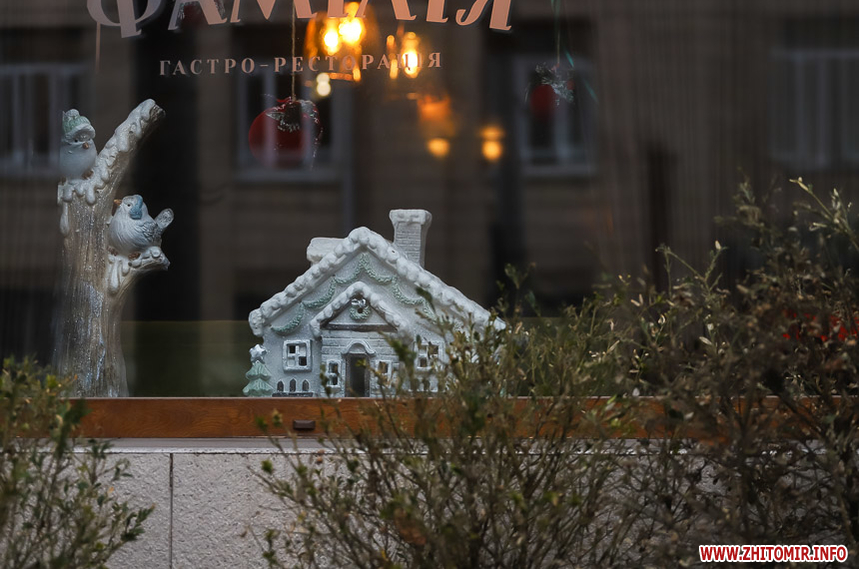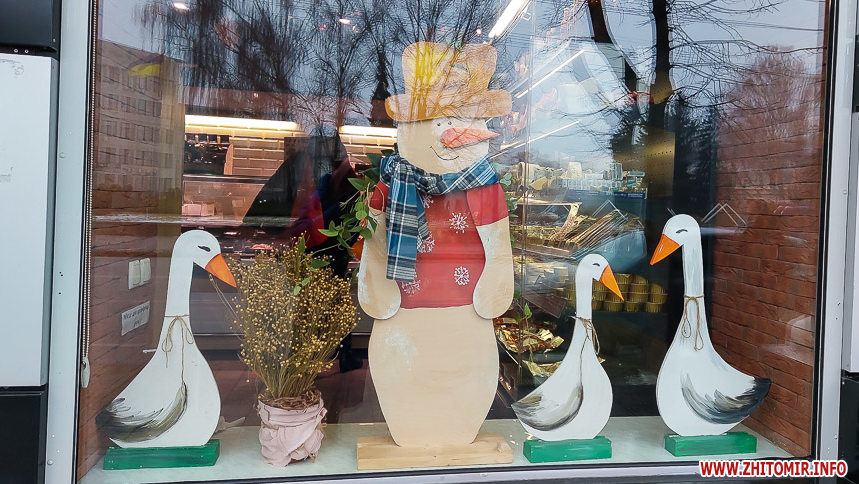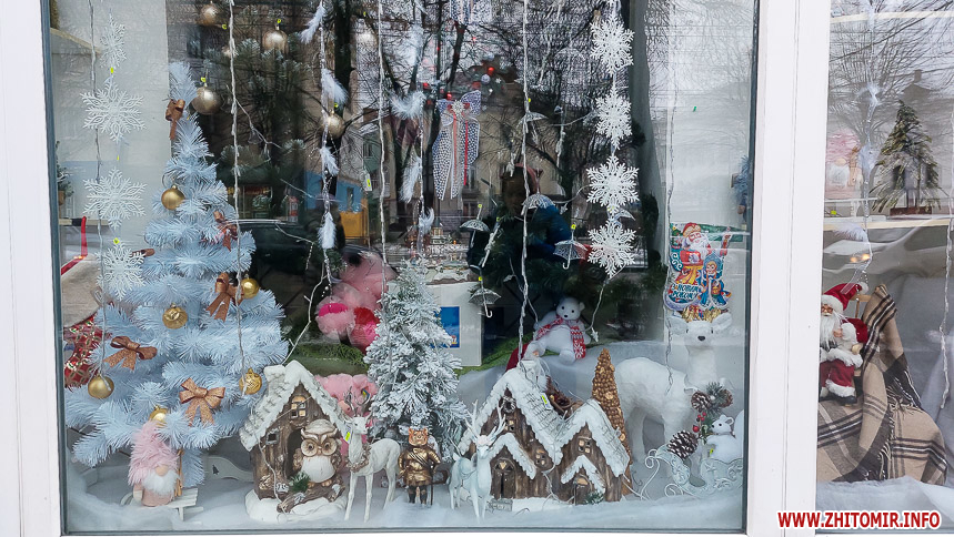 Сніжинки, ялинки, олені, гноми, казкові будиночки та сніговики почали з’являтися на фасадах, у вікнах та вітринах житомирських закладів та інших будівель.