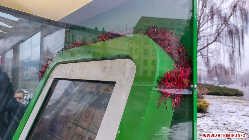 Навіть автомат для поповнення карток хтось прикрасив гірляндою червоного «дощику».
