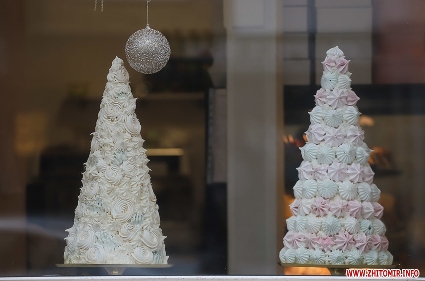 У вітринах кондитерських ялинки зробили зі смаколиків – зефірок, меренгів та тістечок.