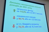 «Доходи бюджету розвитку менші на 8,3 мільйона. Відповідно до основних джерел надходжень розраховано податок на доходи фізичних осіб зростання в обсязі 15%, або 227,4 мільйона. Ця сума на сьогодні не є остаточною, ще опрацьовуються зміни до бюджетного законодавства, очікуємо зміни до бюджетного кодексу в частині спрямування місцевим громадам додатково 4% ПДФО за рахунок перерозподілу з державного бюджету. Крім того, тут можливі і втрати бюджету обласного центру у зв’язку з тим, що податок на доходи фізичних осіб по об’єктах зеленої енергетики сплачується податковим агентом на сьогодні в обласному центрі і можливо ця сума буде зменшена по перерозподілу в межах області. На сьогодні ці надходження у нас 20 мільйонів, частина з цієї суми можливо буде перерозподілена по інших громадах. Податок на майно зростає на 6,7%, акцизний податок – на 7,3% і в цілому (зростання) 12,6%», - пояснила Діна Прохорчук.