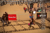Це перенести, наприклад, бетонну кульку вагою в 20-30 кг, перенести якийсь мішок під гірку, і він ще більше загружає в пісок, різні рукоходи і їх комбінації, перелізти стінки в 1,5 — 2 м. І при цьому, якщо ти впав з перешкоди, треба зробити 30 бурпі (тяга присідання з додатковою стійкою між повторами, – ред.) на камеру, і якщо десь неправильно виконати цю вправу, може «прилетіти» штраф, вони це все відслідковують.
