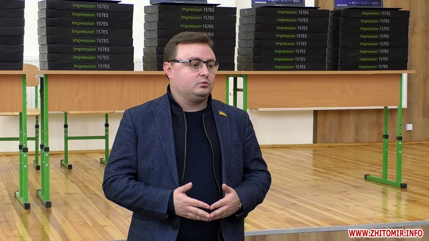 «Сьогодні в Коростенському районі, в Лугинській громаді, в Олевській громаді передали ноутбуки. Це урядова програма і вона передбачає забезпечення навчальних закладів сучасними ноутбуками. Вони є мобільний, тому це дозволяє вчителю працювати у будь-якій аудиторії, дозволяє працювати з ним не тільки в школі, а й проводити, за потреби, виїзні уроки, працювати вдома, готуватись до того, щоб уроки були сучасні та цікаві», — розповідає народний депутат України, фракція «Слуга Народу» Арсеній Пушкаренко.